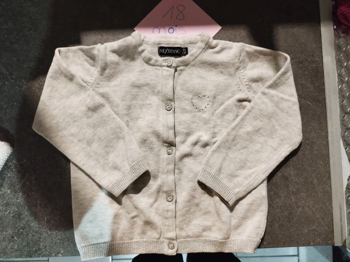 Gilet fin gris avec un petit coeur en strass, Très bon état, Taille 18 mois (86cm) #vetementbebefille18moisjustine182129