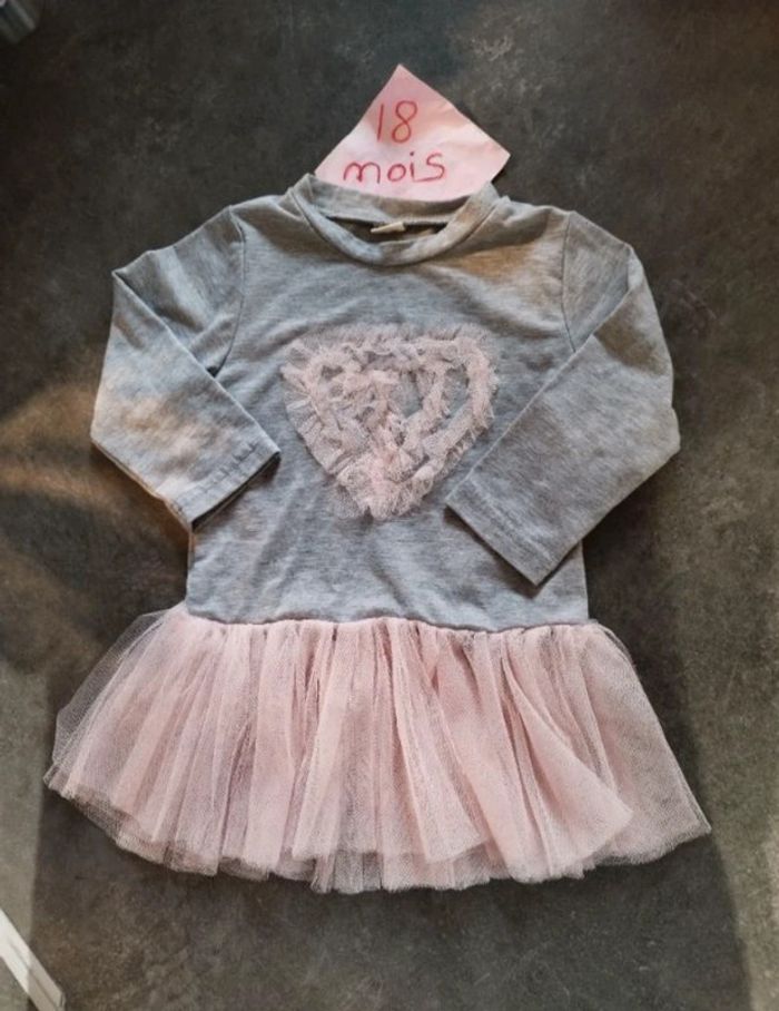 Petite robe grise avec tulle rose clair, NEUVE jamais portée ! Taille 90cm #vetementbebefille24moisjustine182129