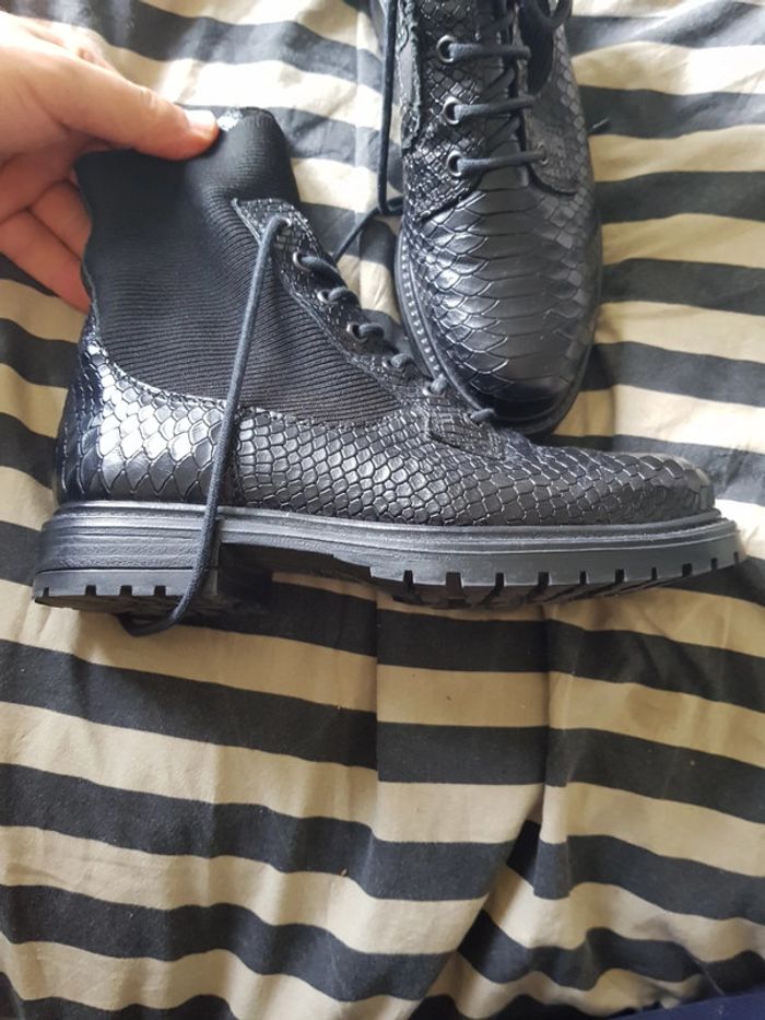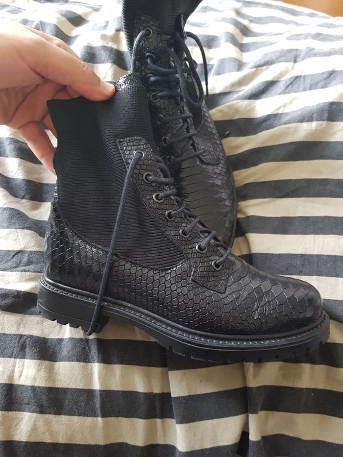 Belle paire de bottines pour femme jeune femme de taille 36 couleur noir fermeture lacets élastique