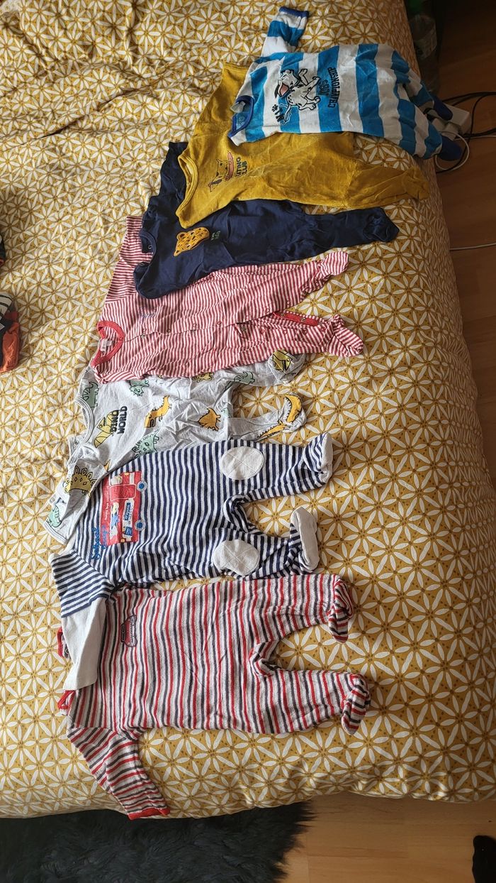 Je vend 7 pyjama garçon de taille 3 mois. Ils sont coton et polaire