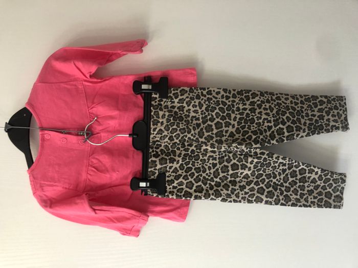 Ensemble fille composé d'un haut manches longues et d'un pantalon legging motif animalier. Marque In Extenso Taille 12 mois, 80cm #elmomo57_fille12mois