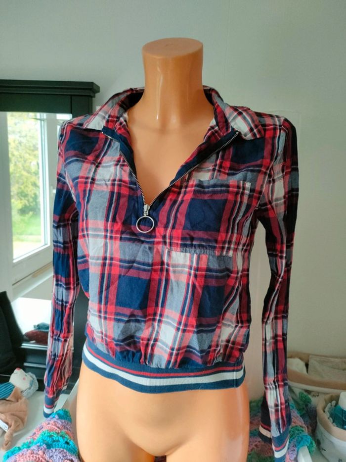 Chemise, manche longue à carreaux, bleu, rouge, blanc, Jennyfer taille S/36