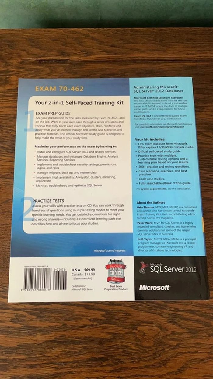 Training Kit (Exam 70-462) Administering Microsoft SQL Server 2012 Databases (MCSA) - photo numéro 1