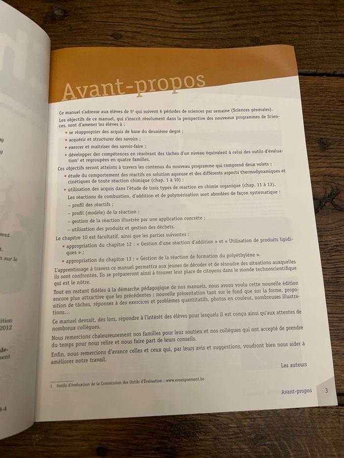 Livre scolaire pour les cinquièmes en Belgique, table des matières en photos