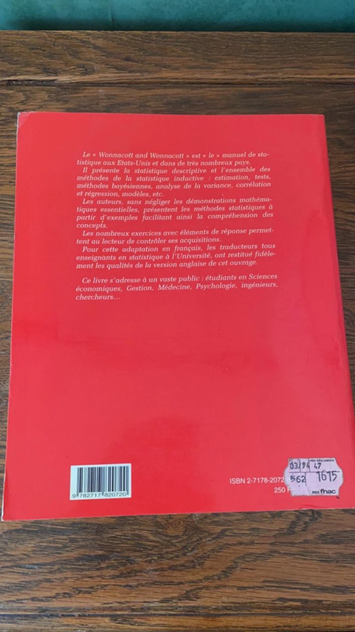 Statistique - Thomas H. et Ronald J. wonnacott - photo numéro 1