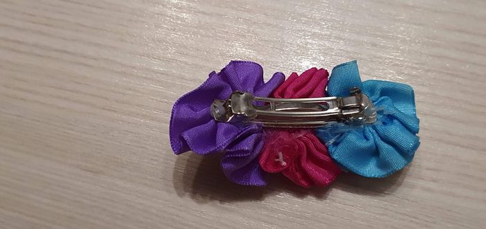 Très jolie barrette tricolore violet rouge bleue Longueur 8 cm environ pince de 4 cm Très bon état Envoi par lettre suivie