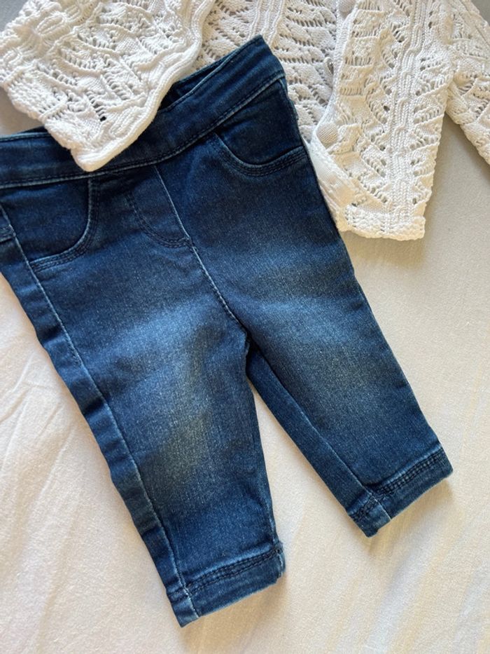 Esemble gilet en mail et jean fille 3 mois - photo numéro 1