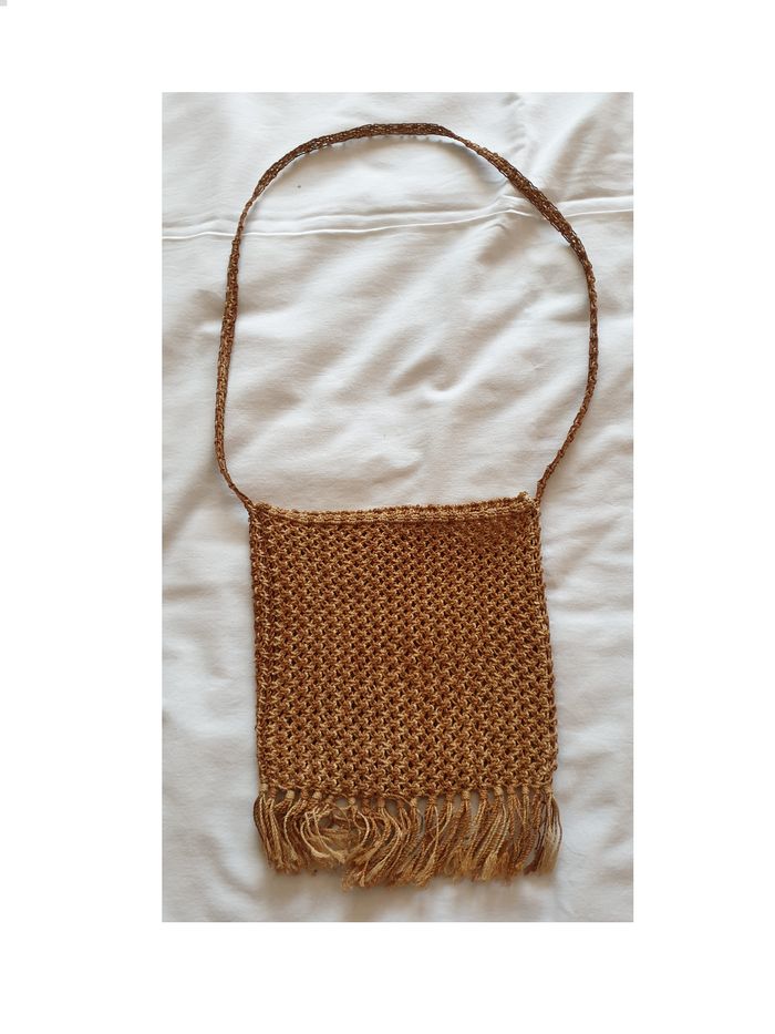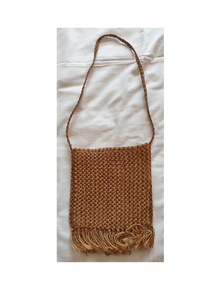 Sac bandoulière. Sac bandoulière marron en cordelettes à franges. Longueur de la bandoulière : 38 cm Longueur du sac avec franges: 25 cm Longueur des franges : 6 cm En bon état. Sans marque. 2€. #vero38110enfantsdivers
