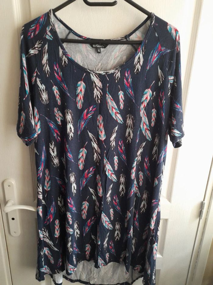 Tunique longue bleue marine,plumes colorées Taille 48 Très bon état #rachel62500femme4850