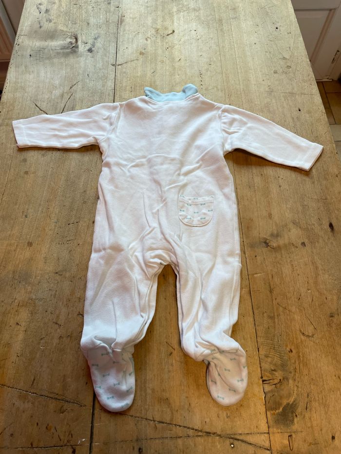 Pyjama léger blanc motif lapin Taille 6 mois Col effet chemise et petite cravate décorative Sans étiquettes de taille et instructions de lavage