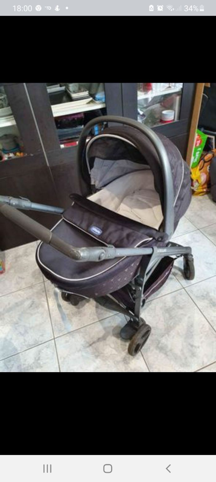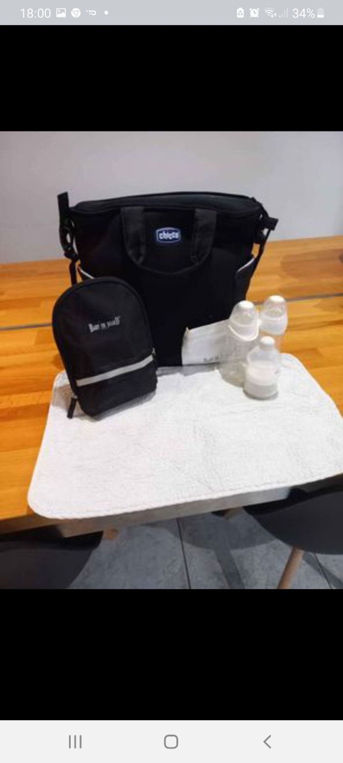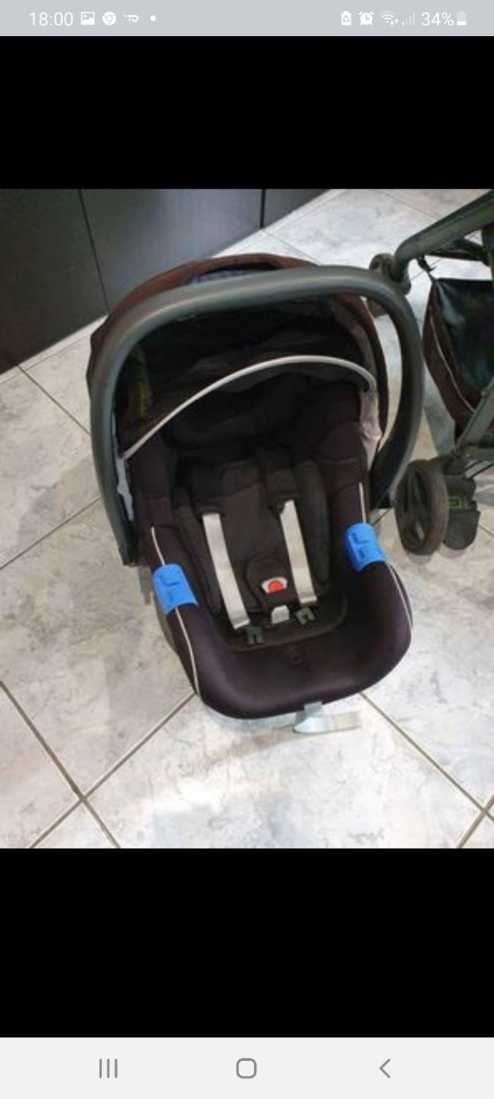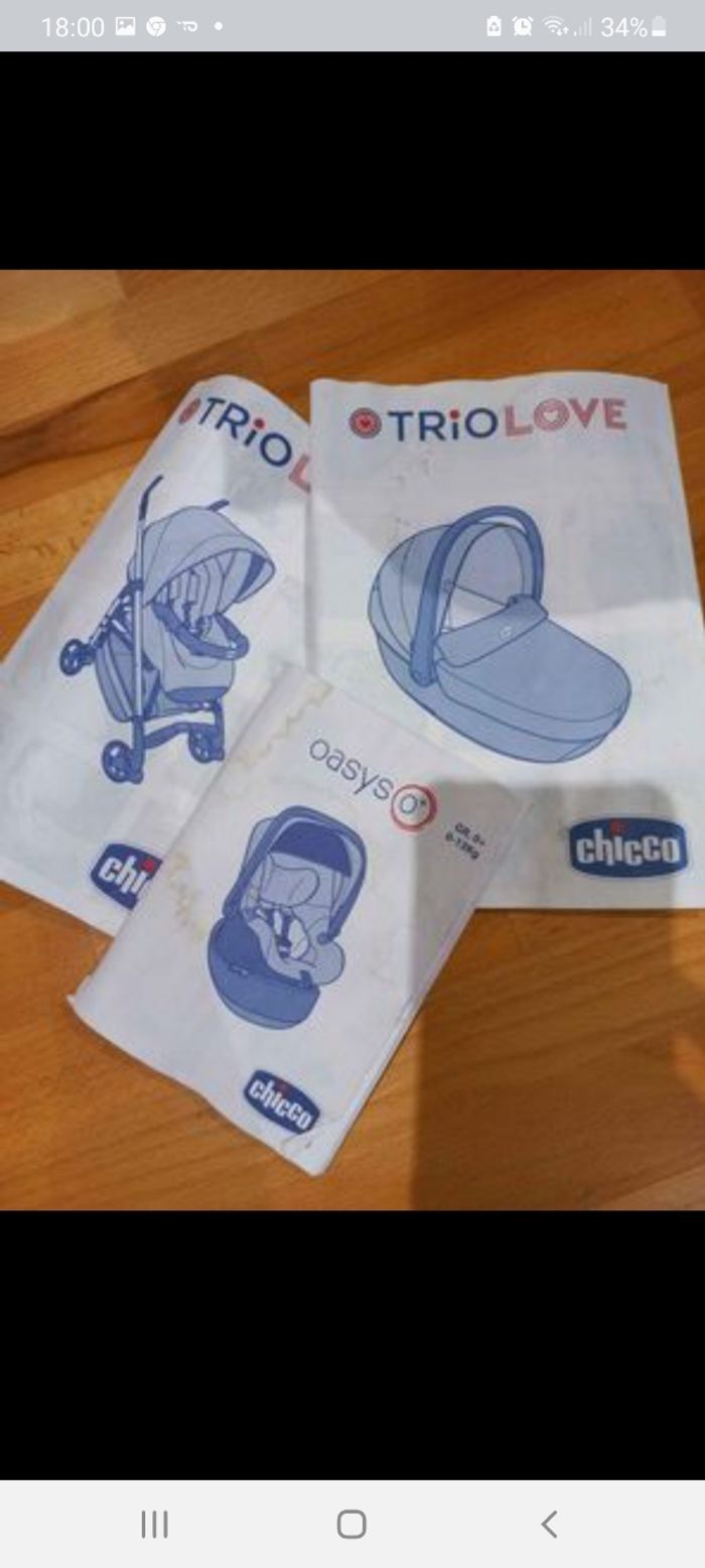 Poussette trio marque Chicco Cosi + Landeau + poussette Avec sac à langer, tapis pour le change et pochette Isotherme. 2 biberons ainsi que des dossettes de la marque bébé confort.