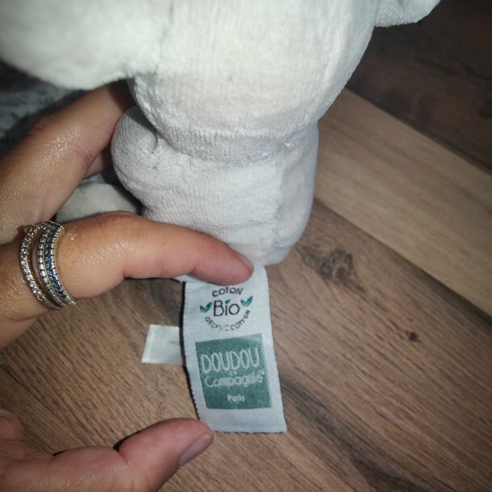 Doudou mouchoir Souris grise - vert en coton BIO - 15 cm environ Petit point de couture sur l'oeil 9.90 euros Envoi en relais
