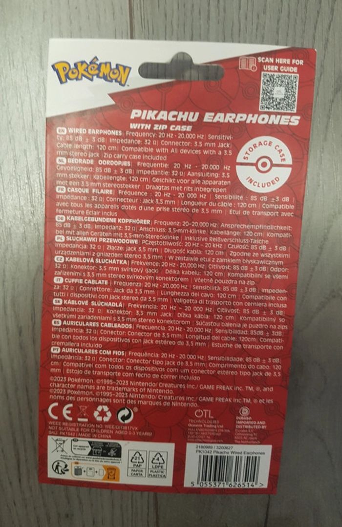 Pokemon pikachu wired earphones with zip case new sealed blister