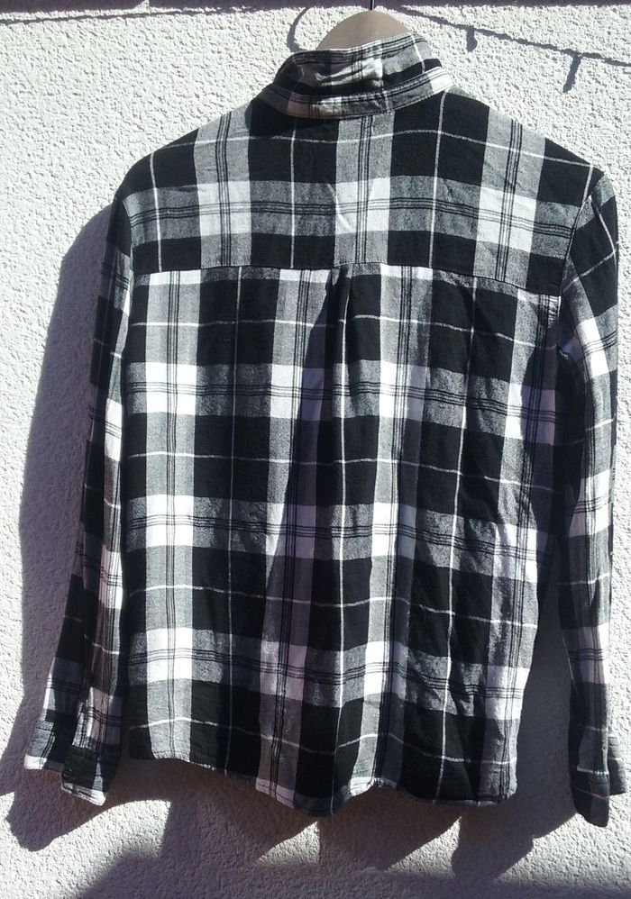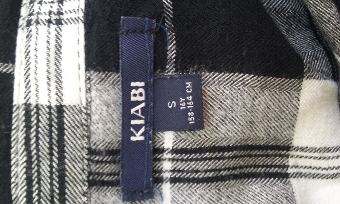 Si on récapitule, l'étiquette indique taille S- 16 ans- 158/164, euh... Cette chemise convient à un 14 ans mais aussi à un 16 ans! Coloris noir et blanc.