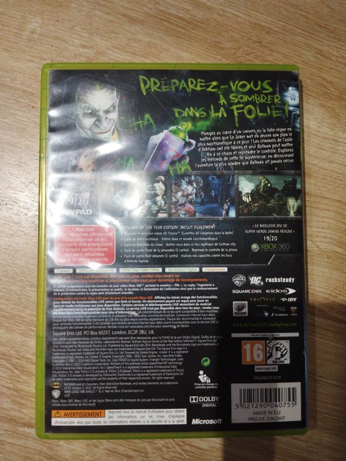 Batman Arkham Asylum game of the year édition xbox 360