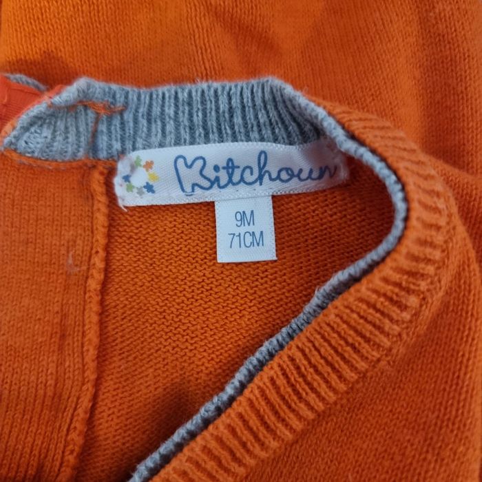 !! PROMO sur les lots bébé -> 1euro les 3 articles!! Pull léger orange avec boutons pression sur la nuque. Taille 9 mois Coton
