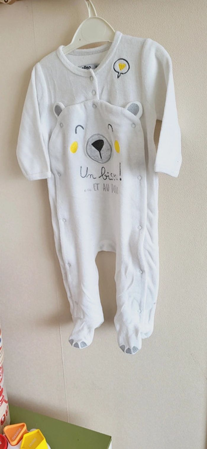 Pyjama velours blanc Gémo 6 mois - photo numéro 1