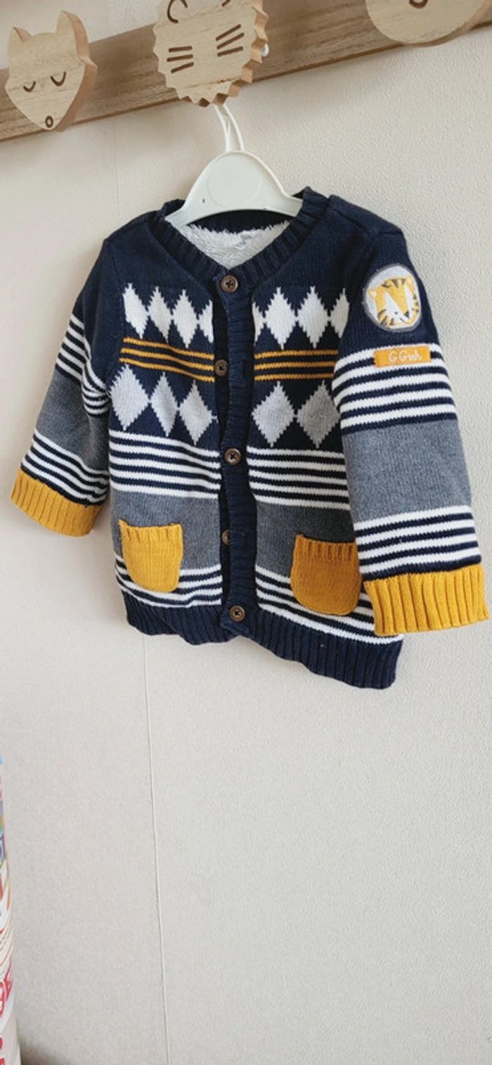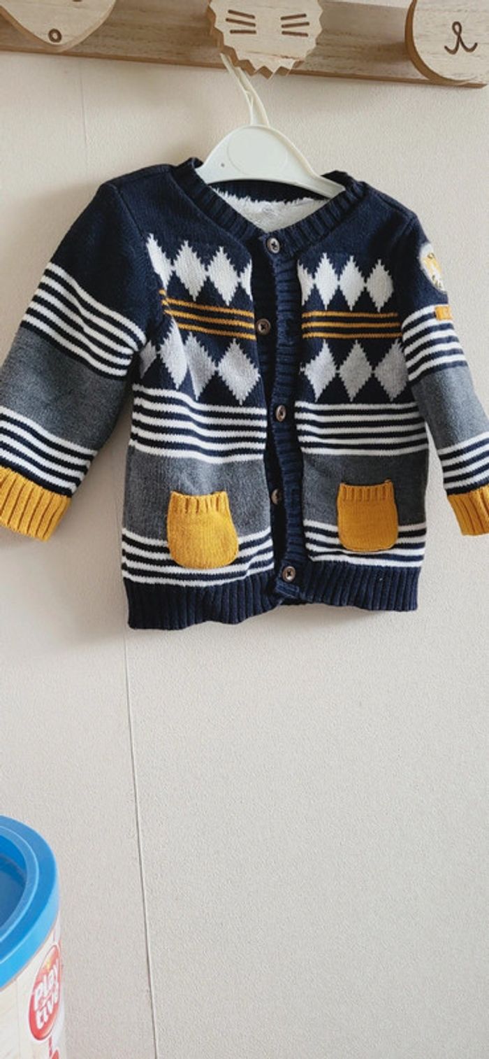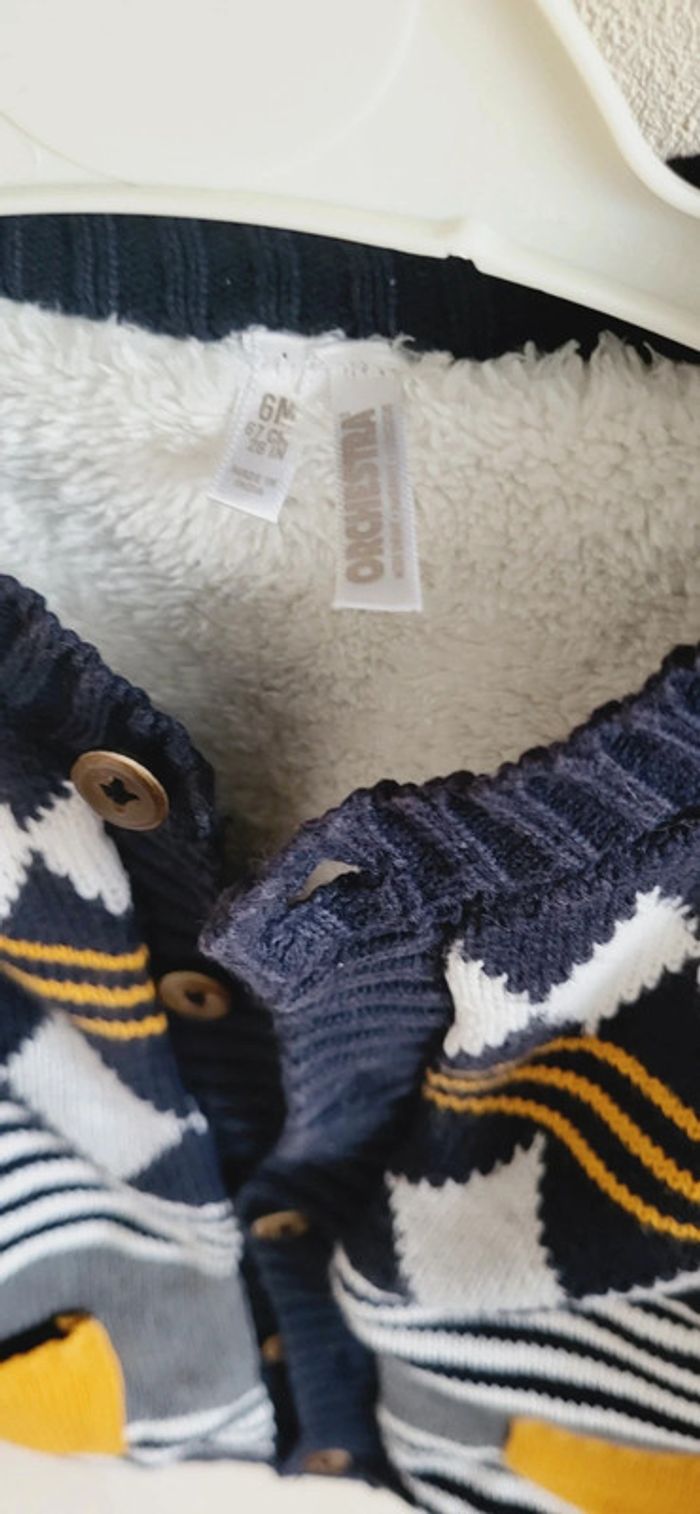 Gilet orchestra molletonné bleu marine moutarde 6 mois - photo numéro 4