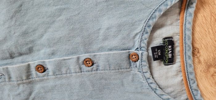 Combi short kiabi taille 12 mois Style jean Léger Défaut d'impression sous le dessin, je l'ai acheté comme ça, se voit tres peu