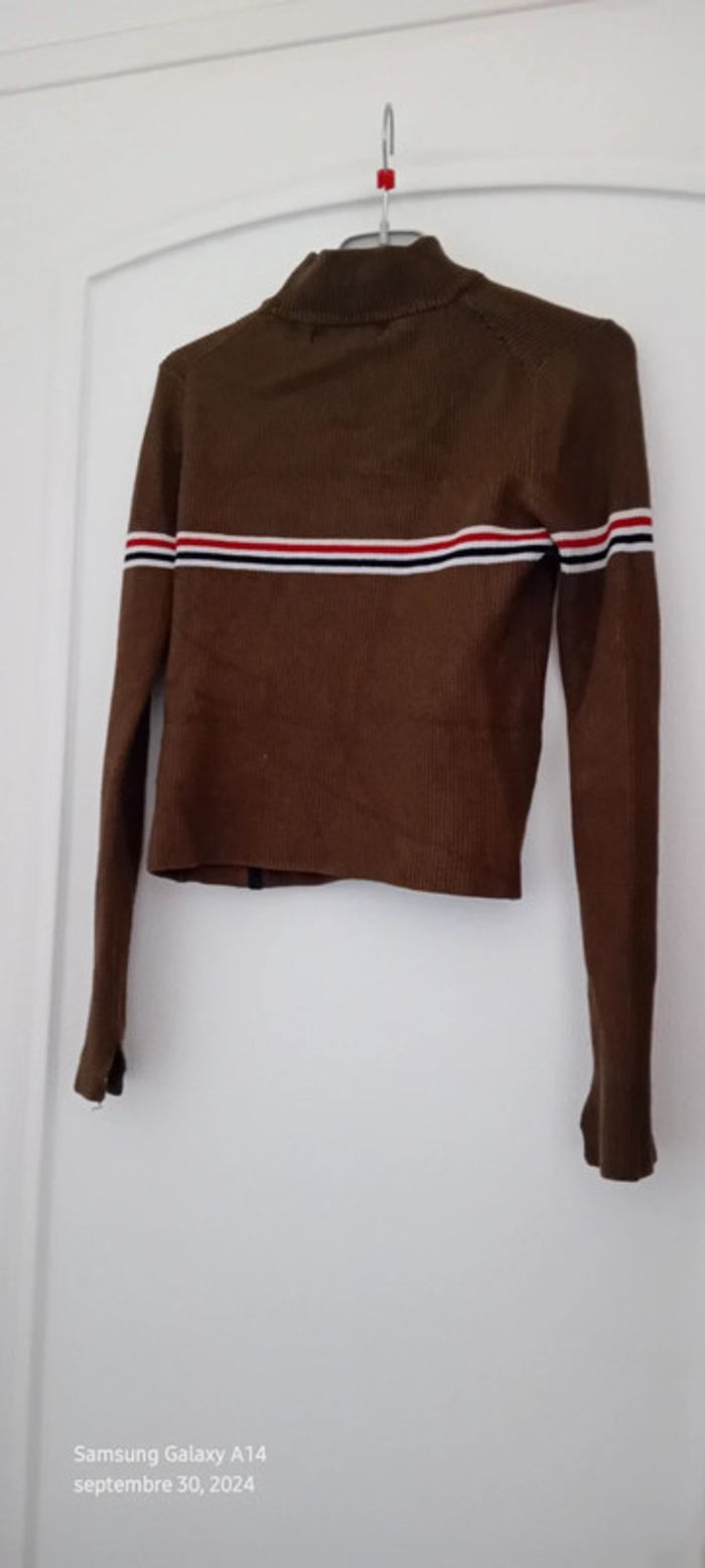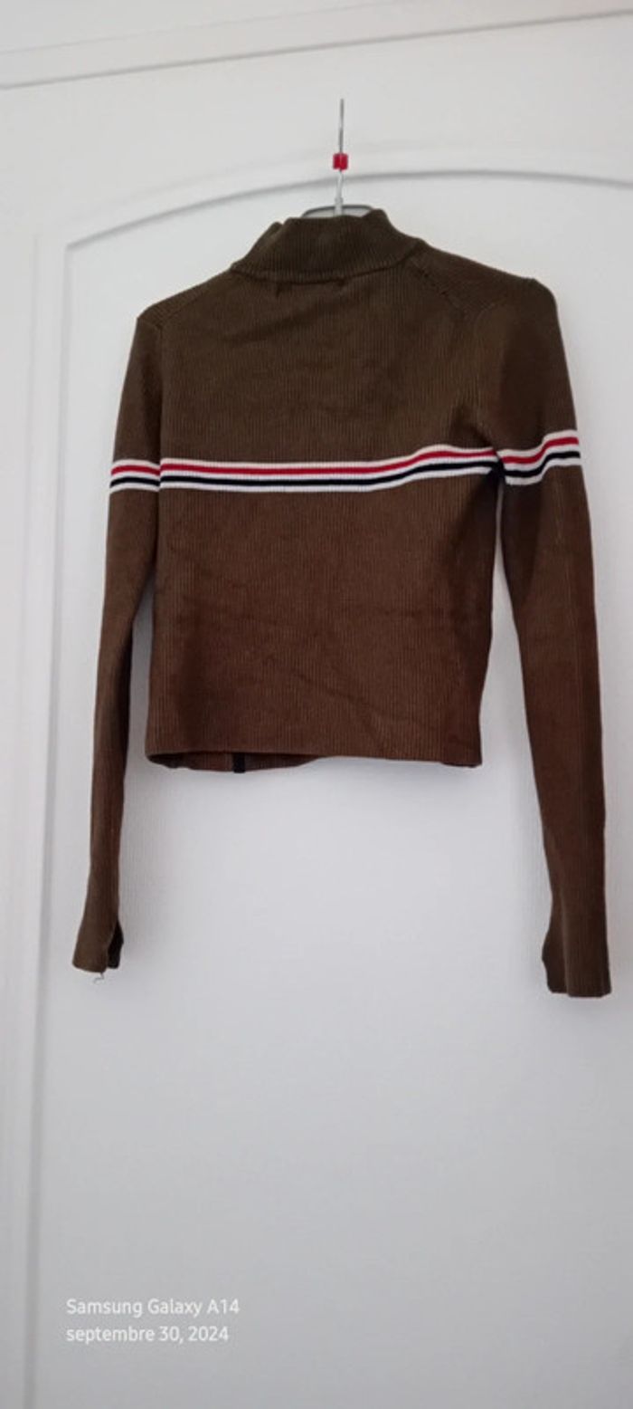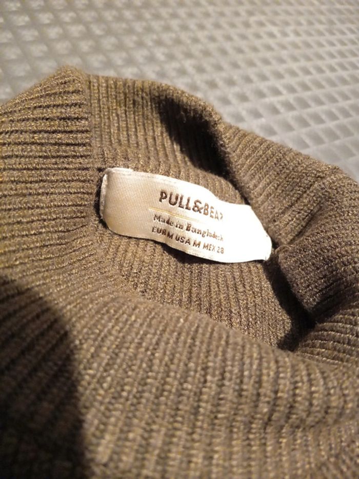 Pull court col montant bandes à rayures  kaki femme M pull & bear - photo numéro 3