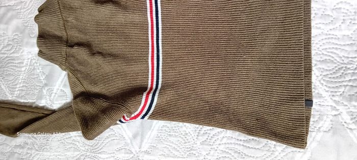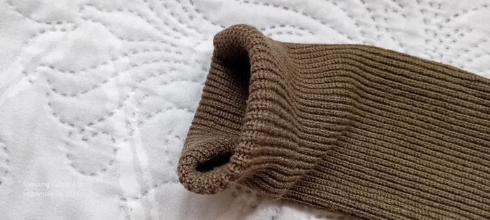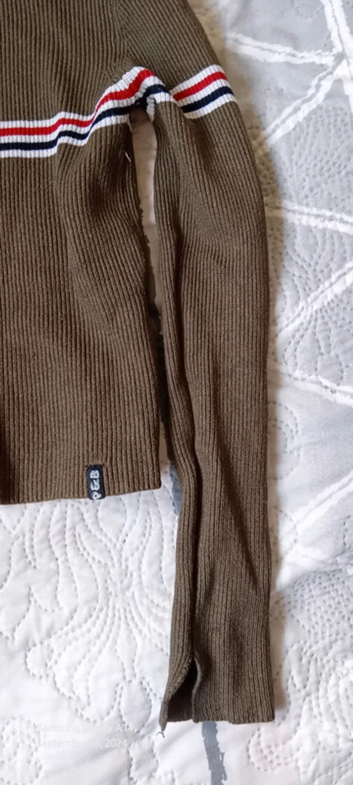 Pull court manches longues en viscose et nylon couleur kaki avec bandes tricolore noir blanc et rouge manches fendues qui peuvent se replier col montant longueur 44 cm largeur aisselles à aisselles 35 cm largeur épaules 30 cm très peu porté en très bon état ⚠️ juste une bouloche ai dos peu visible (voir dernières photos) #midole #midolefemme38 #midolefemme #pullfemme38 #pullcourt #pullpullandbear #femme38 #femmeM #pullandbear #kaki #pullcourt #pullviscose