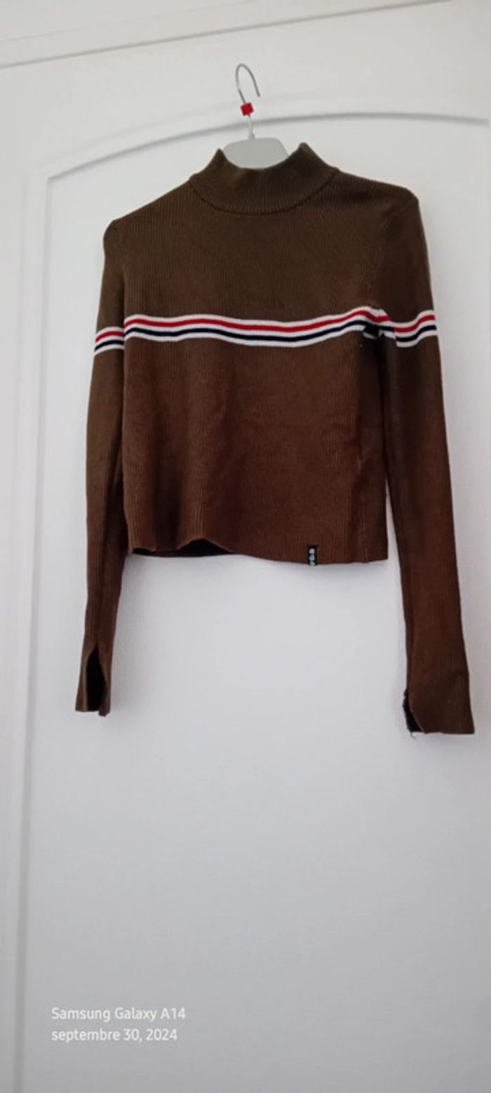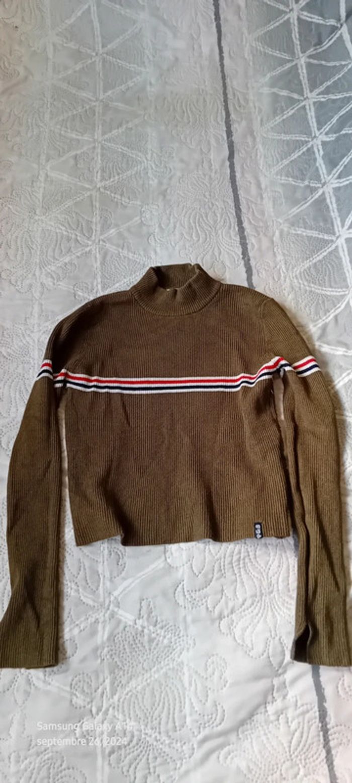 Pull court col montant bandes à rayures  kaki femme M pull & bear - photo numéro 1