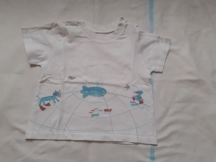 Tee shirt blanc motif poissons, souris... 3 mois