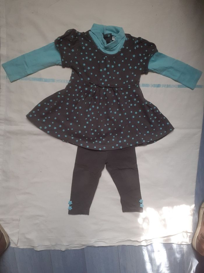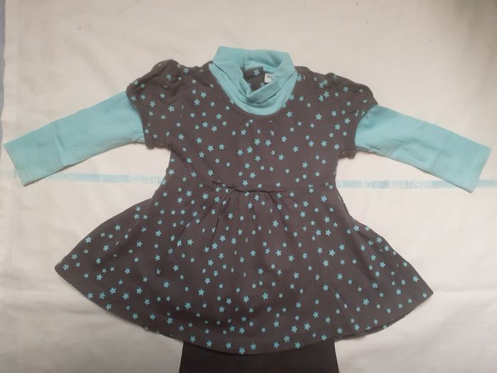 Ensemble tunique turquoise et grise foncée à étoiles et legging gris foncé 12 mois