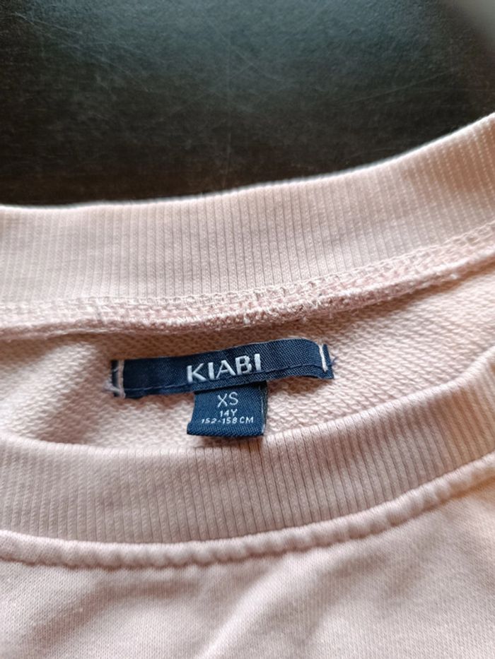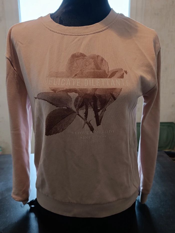 Sweat KIABI Rose clair avec impression Coton, Polyester & Elasthanne TAILLE XS BON ETAT (car petite tache: à peine visible - voir dernière photo) Allez voir mes autres ventes!
