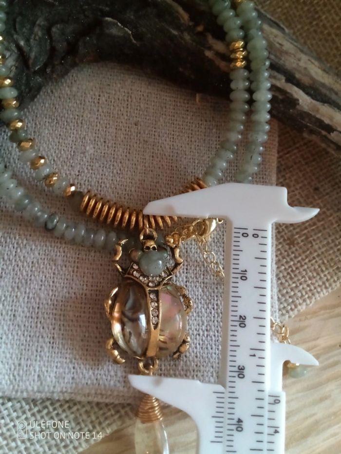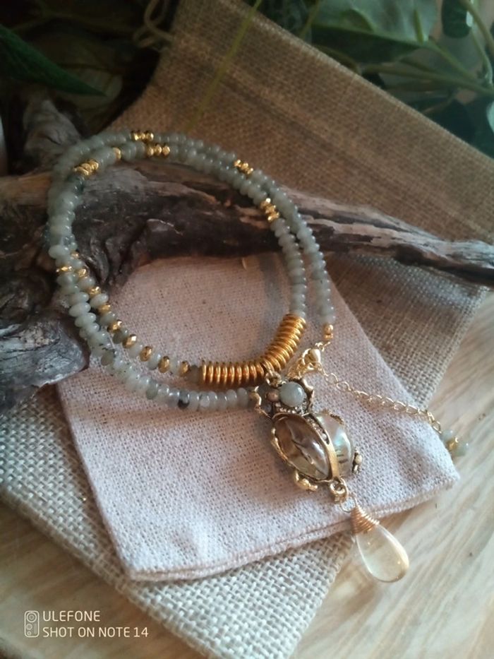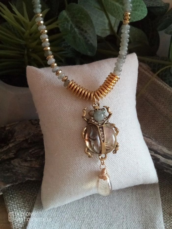 Collier pendentif scarabée ormeaux et pierres de labradorite - photo numéro 4