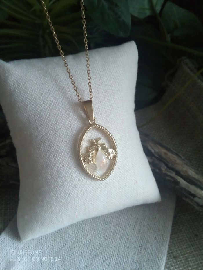 Collier pendentif abeille et pierre de lune - photo numéro 2
