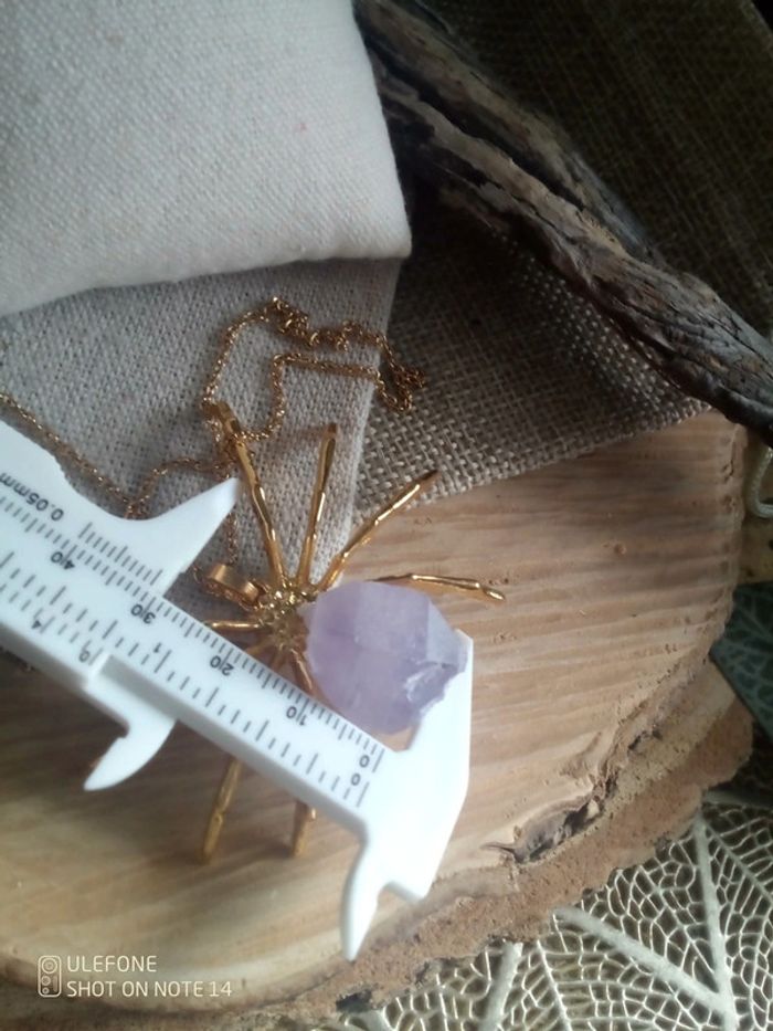 Collier pendentif araignée avec pierre naturelle d'améthyste 💜. - photo numéro 3