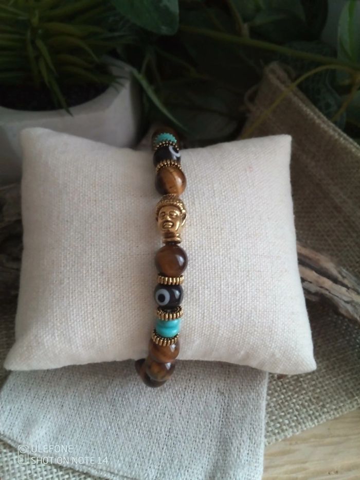Bracelet bouddha pierres oeil de tigre - photo numéro 1