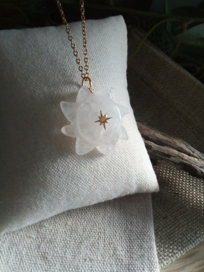 Collier pendentif soleil en pierre naturelle de cristal de quartz - photo numéro 1