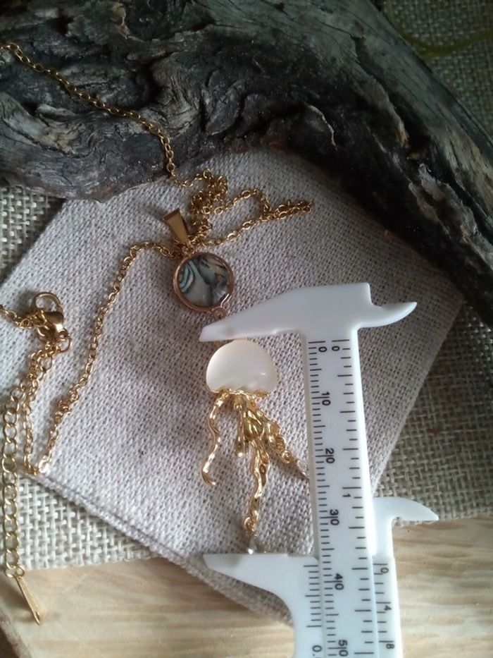 Collier pendentif méduse et connecteur ormeaux - photo numéro 2