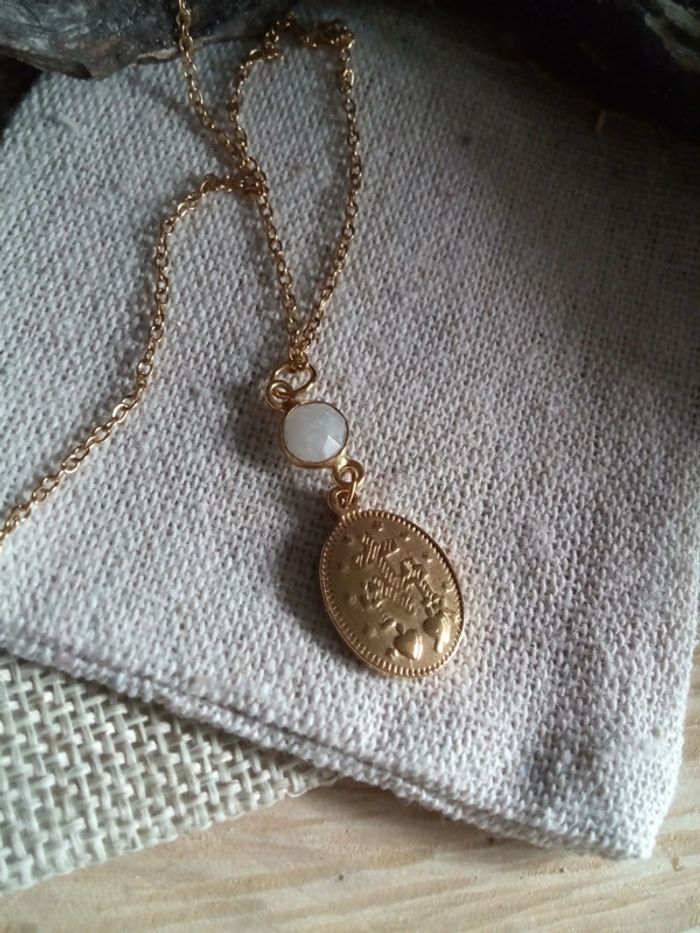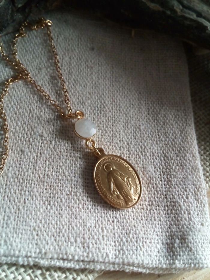 Collier vierge Marie et pierre de lune