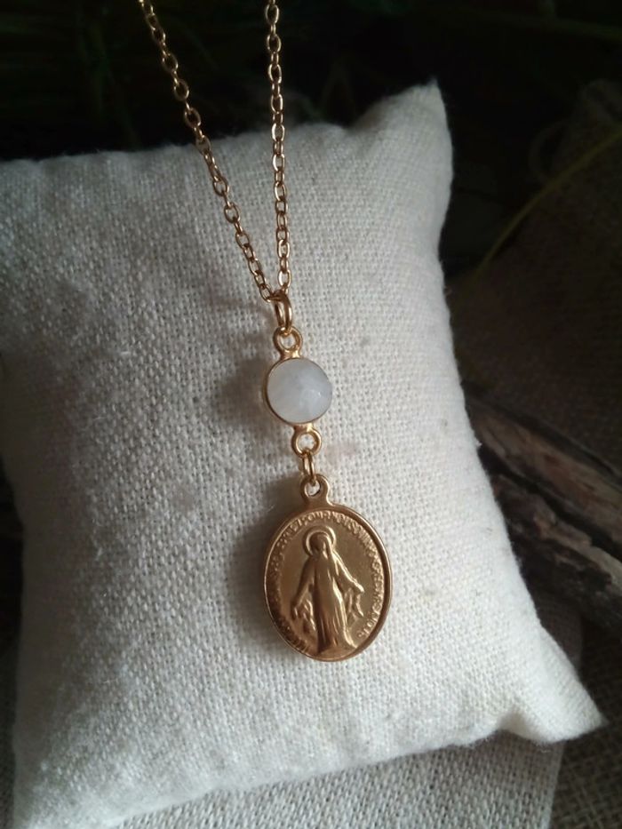 Collier vierge Marie et pierre de lune - photo numéro 1