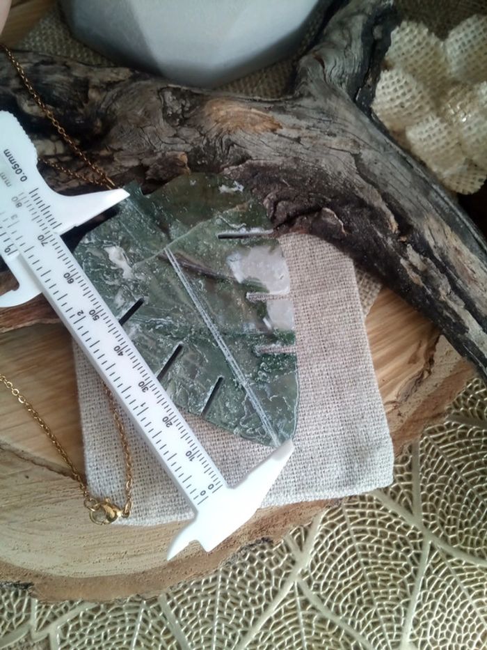 Collier pendentif feuille en pierre naturelle d'agate arbre - photo numéro 3