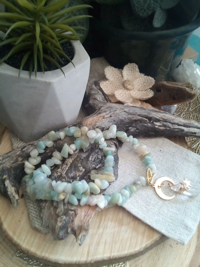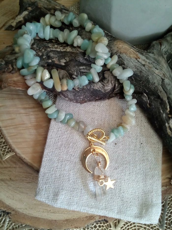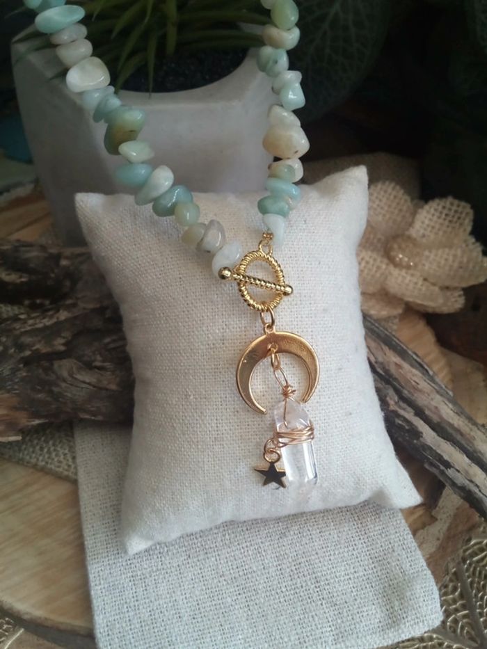 Collier en pierre d'amazonite et pendentif lune et pierre de cristal de roche - photo numéro 2