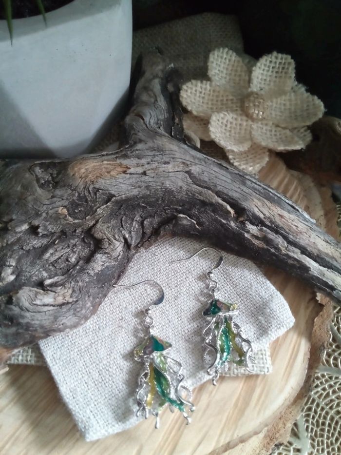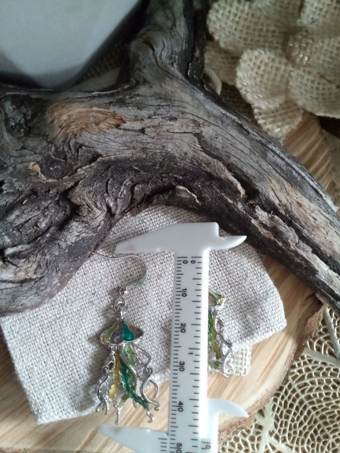 Boucles d'oreilles bohèmes méduses argentées et vertes - photo numéro 2