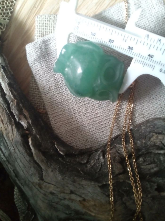 Collier sautoir hibou en pierre d'aventurine 💚. - photo numéro 3