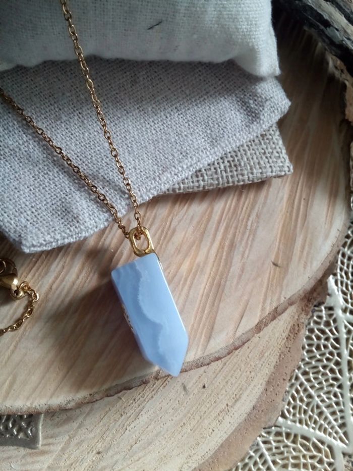 Collier pointe pierre de calcédoine naturelle bleu - photo numéro 1