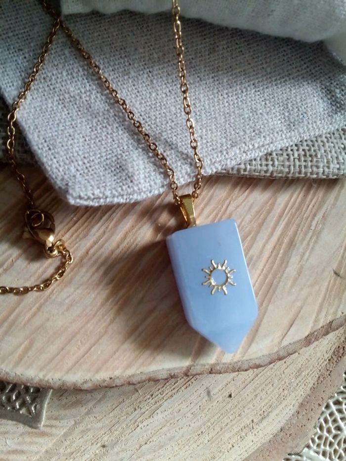 Collier pointe pierre de calcédoine naturelle bleu - photo numéro 2