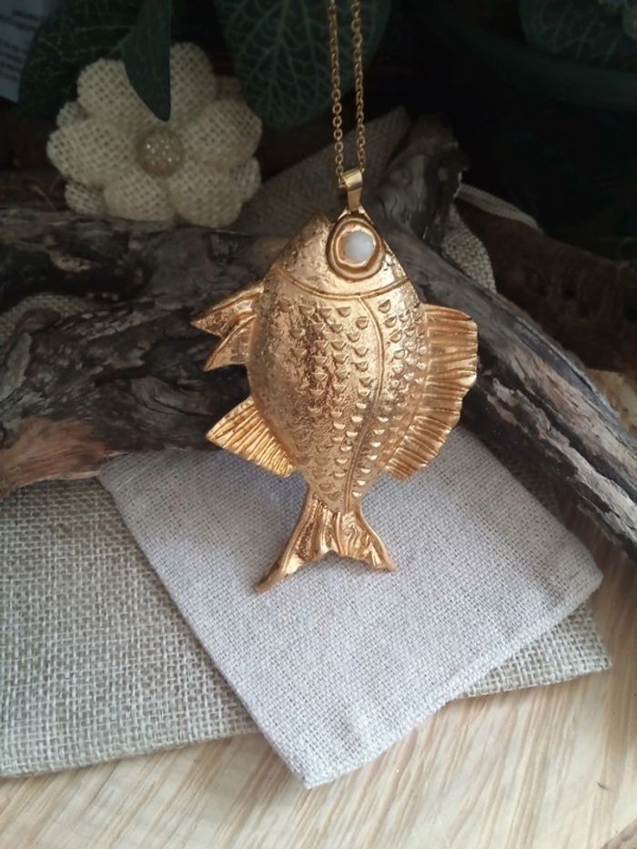 Collier poisson et pierre de lune naturelle - photo numéro 1