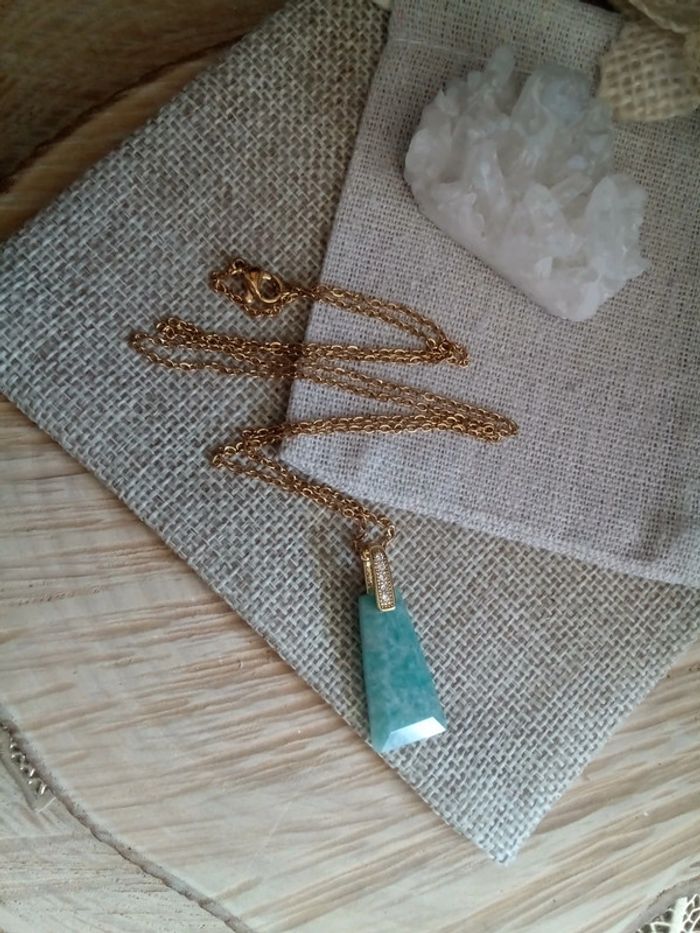 Collier pendentif en pierre naturelle d'amazonite - photo numéro 2