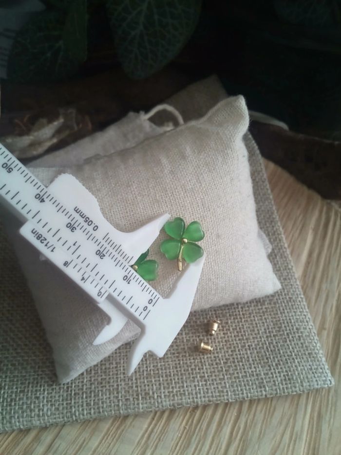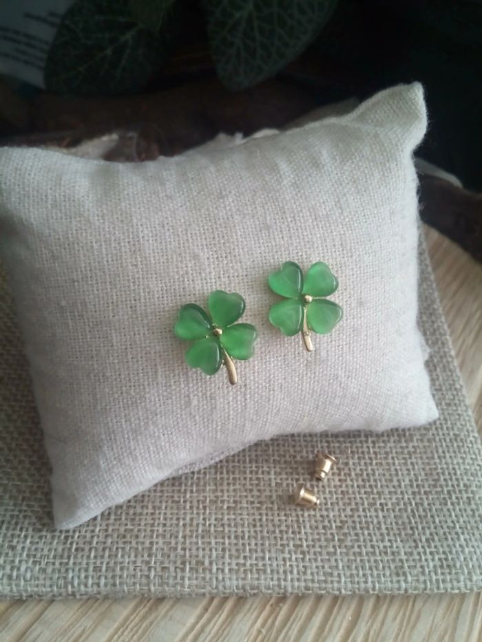 Boucles d'oreilles trèfles à 4 feuilles en pierres oeil de chat - photo numéro 2