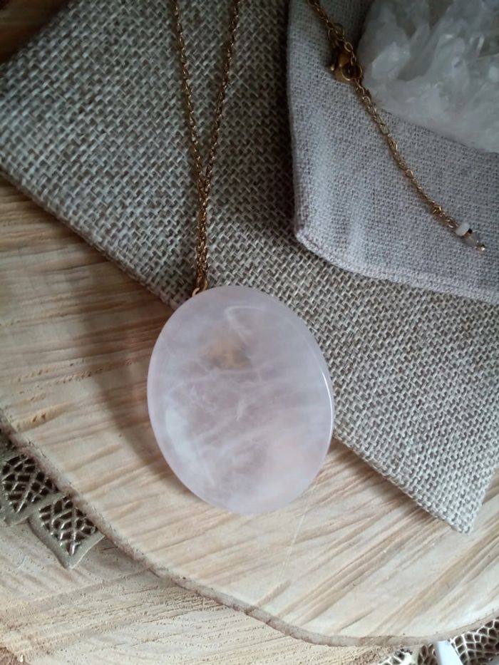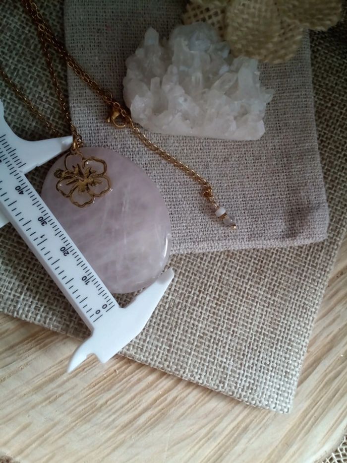 Collier en quartz rose et fleur dorée - photo numéro 5