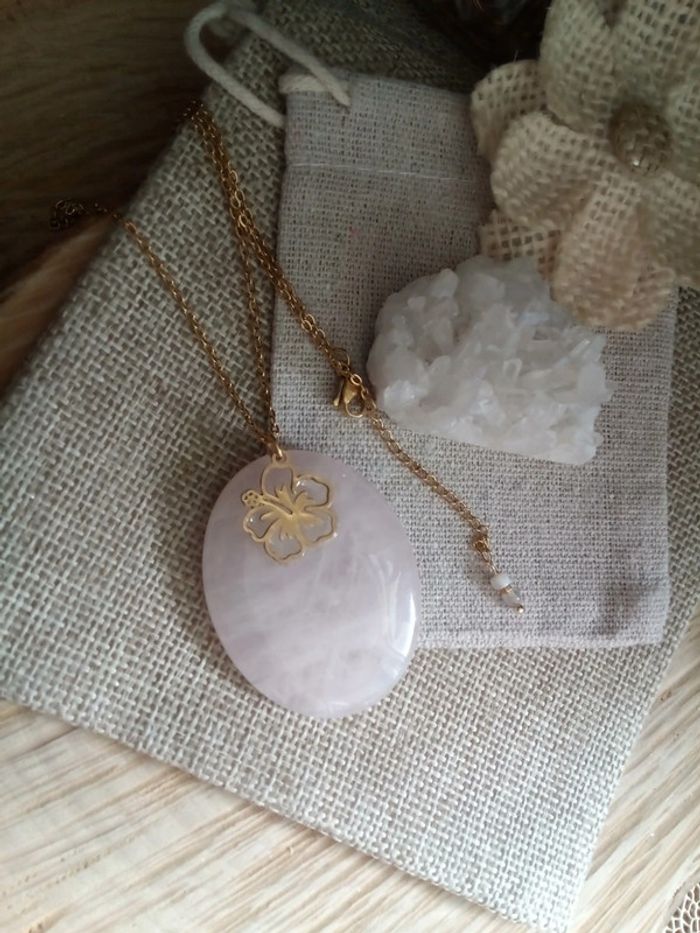 Collier en quartz rose et fleur dorée - photo numéro 1