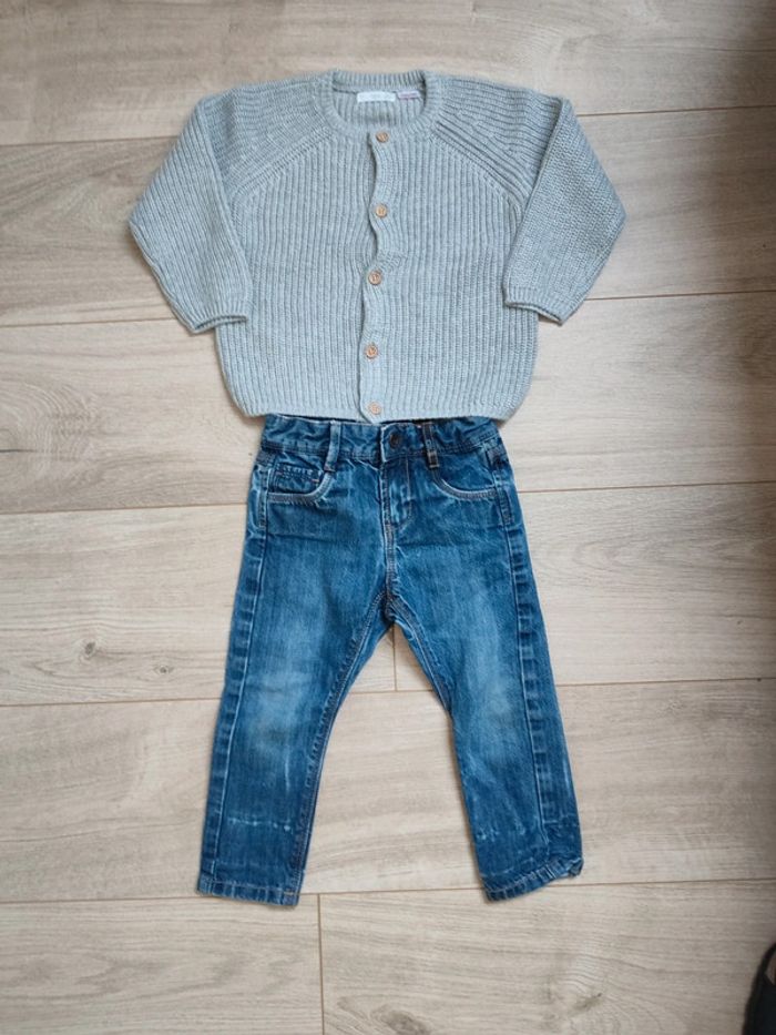 Gilet Mango neuf et jean Okaïdi en bon état mais genoux blanchis