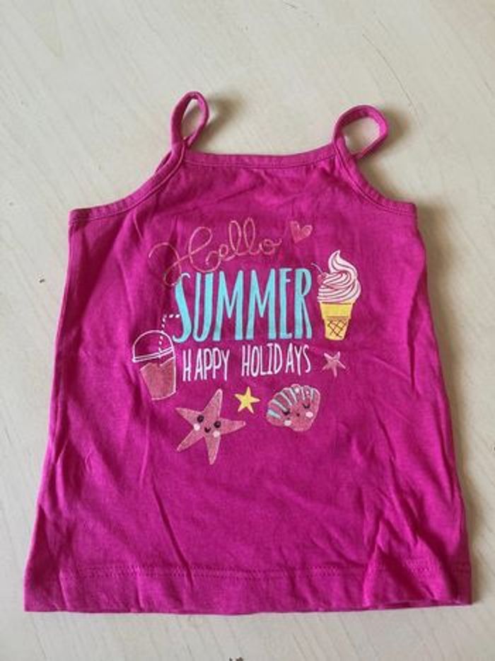 Ensemble comprenant 2 débardeur et une jupe short couleur fushia. 12 mois in extenso et mots d’enfants #sevh67fille12mois
